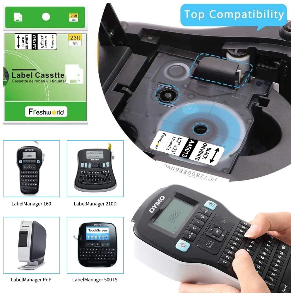 Freshworld Tape Replacement for Dymo D1 Label 45013 S0720530 Refill, Black on White,1/2 Inch x 23 ft