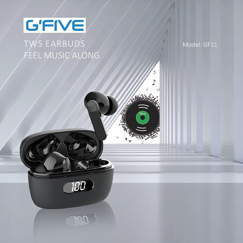 G'FIVE Wireless Bluetooth TWS Earbuds with 35 Hours Charging LED Display Case, Black (GF11)