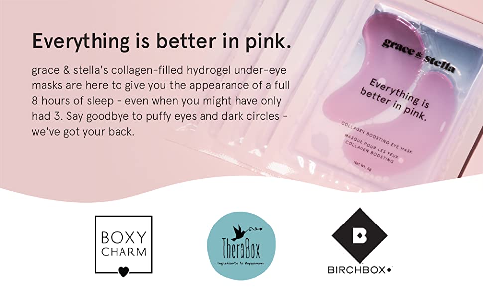 Grace & Stella, Everything is Better in Pink ,Eye Mask Collagen Boosting, 12 Pairs Net Wt. 6 grams