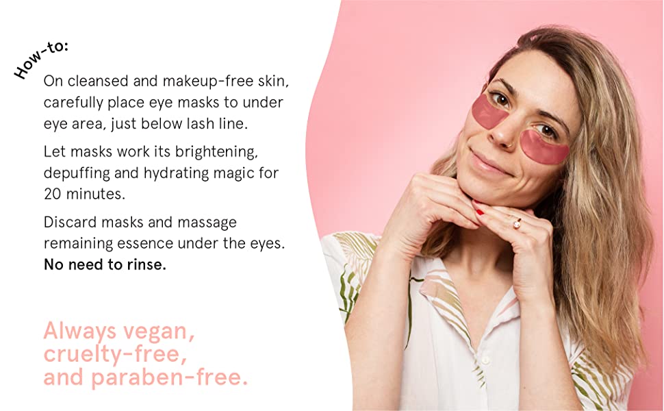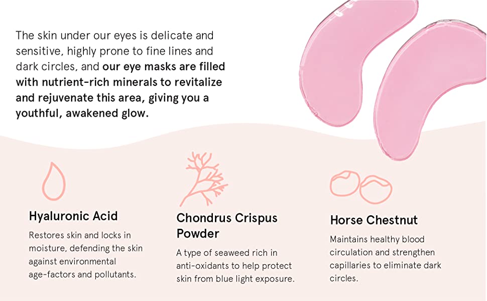 Everything is better in pink. You've seen them in gold. They've been a cult favorite for years. You've endured many early mornings with the help of them. They're the best wake-up ritual, and now...they come in pink. With a slightly different formula, our Pretty In Pink Eye Masks are focused on firming and hydrating the under eyes. Formulated with Palmitoyl Tripeptide-5 to stimulate and boost collagen production, Fructose to attract and retain moisture in the skin, and Horse Chestnut to maintain healthy blood circulation and strengthen capillaries (bye, dark circles!), these eye masks are the key to improving skin texture and firmness. We've also passed over some of the best ingredients from our gold eye masks, like Chondrus Crispus Powder, a type of seaweed rich in anti-oxidants to help protect skin from blue light exposure, and Glycerin for drawing in moisture to the deeper layers of the skin, leaving the skin hydrated and smooth. They're everything and more - and they're in pink.