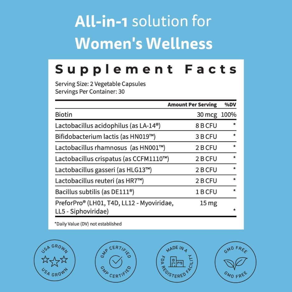 Happy V Probiotics are specifically designed to support vaginal health and overall wellness. By optimizing your female flora and pH balance, these proven probiotic strains help you feel confident and refreshed every day. Regular use promotes a healthy female part environment, improving pH and flora for optimal comfort and health.
