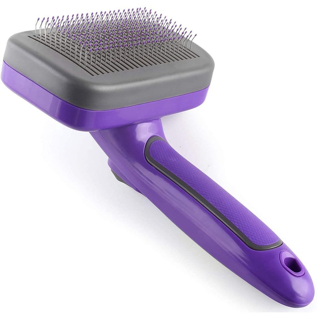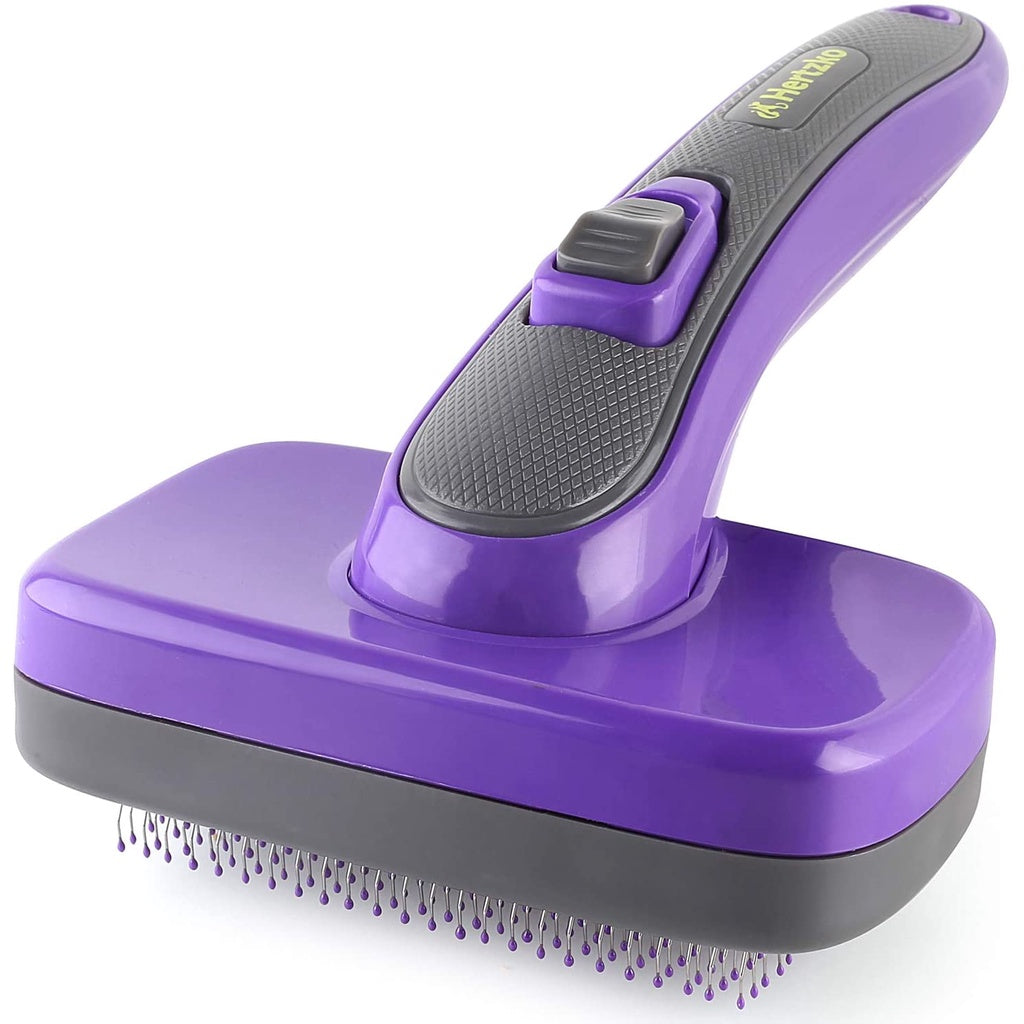 Hertzko Self Cleaning Pet Slicker Brush with Plastic Tips for Sensitive Dogs and Cats, Small