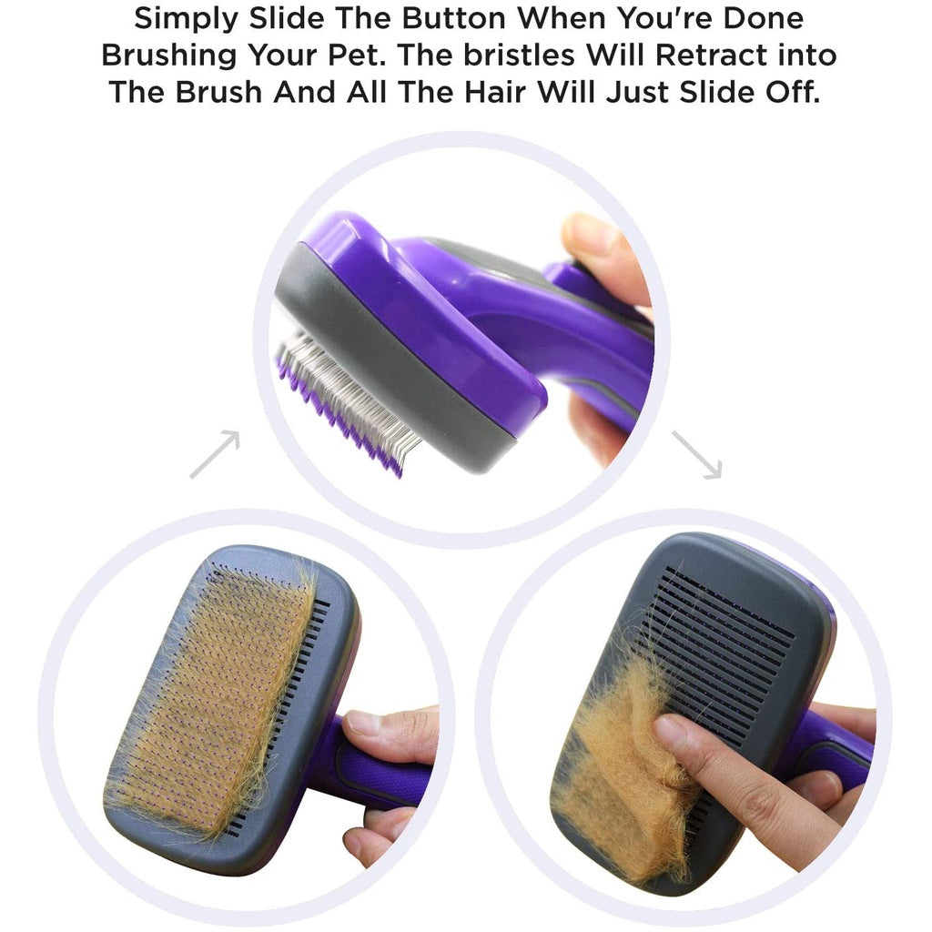 Easy to clean. Push-button technology easily releases the hair from your brush. When your done brushing simply slide the button again and the bristles will retract in to the brush. Making it SUPER SIMPLE to remove all the hair from the brush, so it is ready for the next time use.