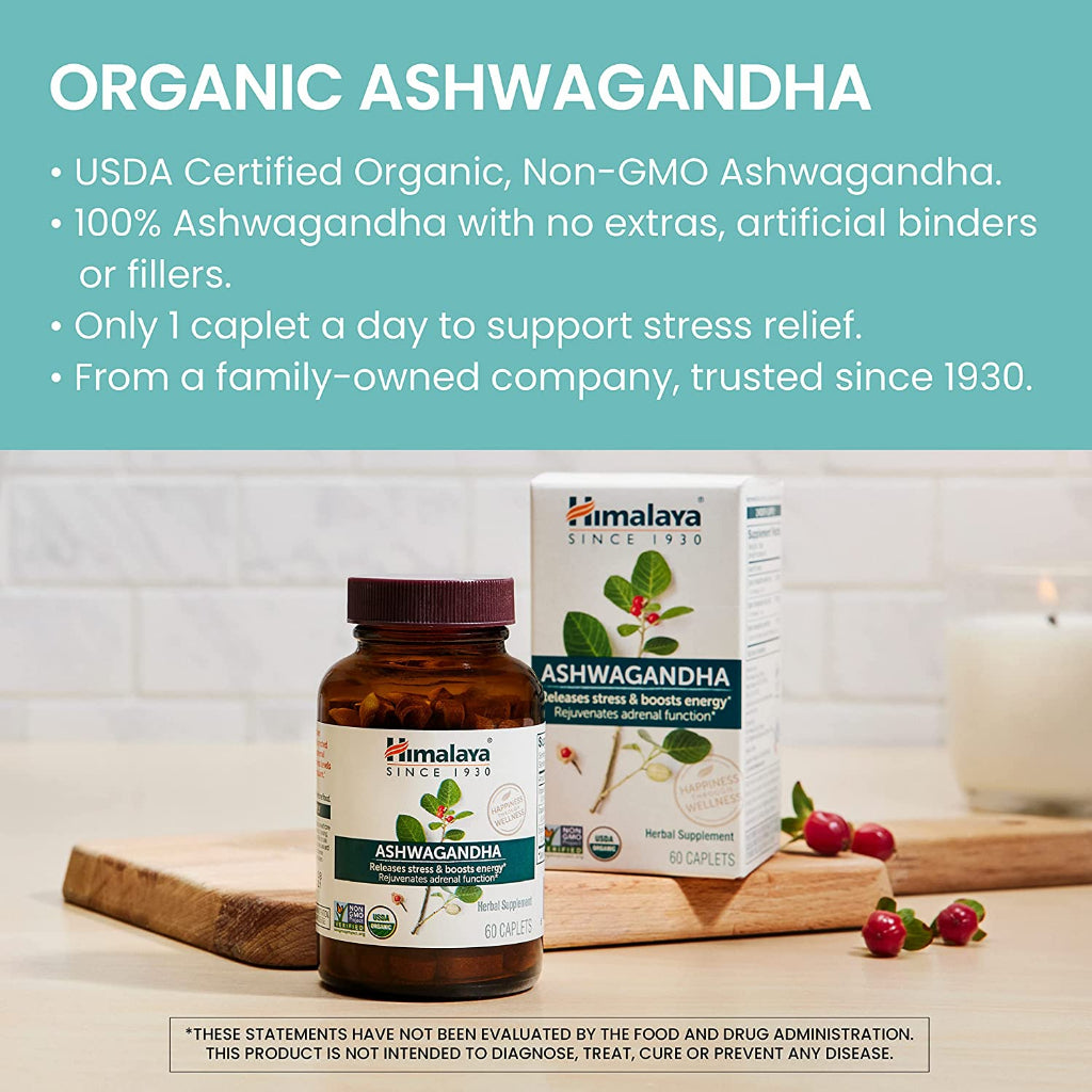 Himalaya Organic Ashwagandha Releases Stress & Boosts Energy 2 Month Supply 60 Caplets