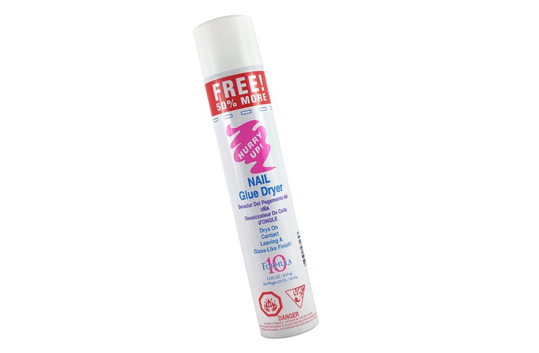 Dries super fingernail glue in a few seconds. A necessity if you use nail glue for any reason. Wraps, nail repairs, artificial nails, etc. Great for our nails. Very mild formula, made especially for fingernails. A quick spray or two is all you need. Large can lasts a long time.