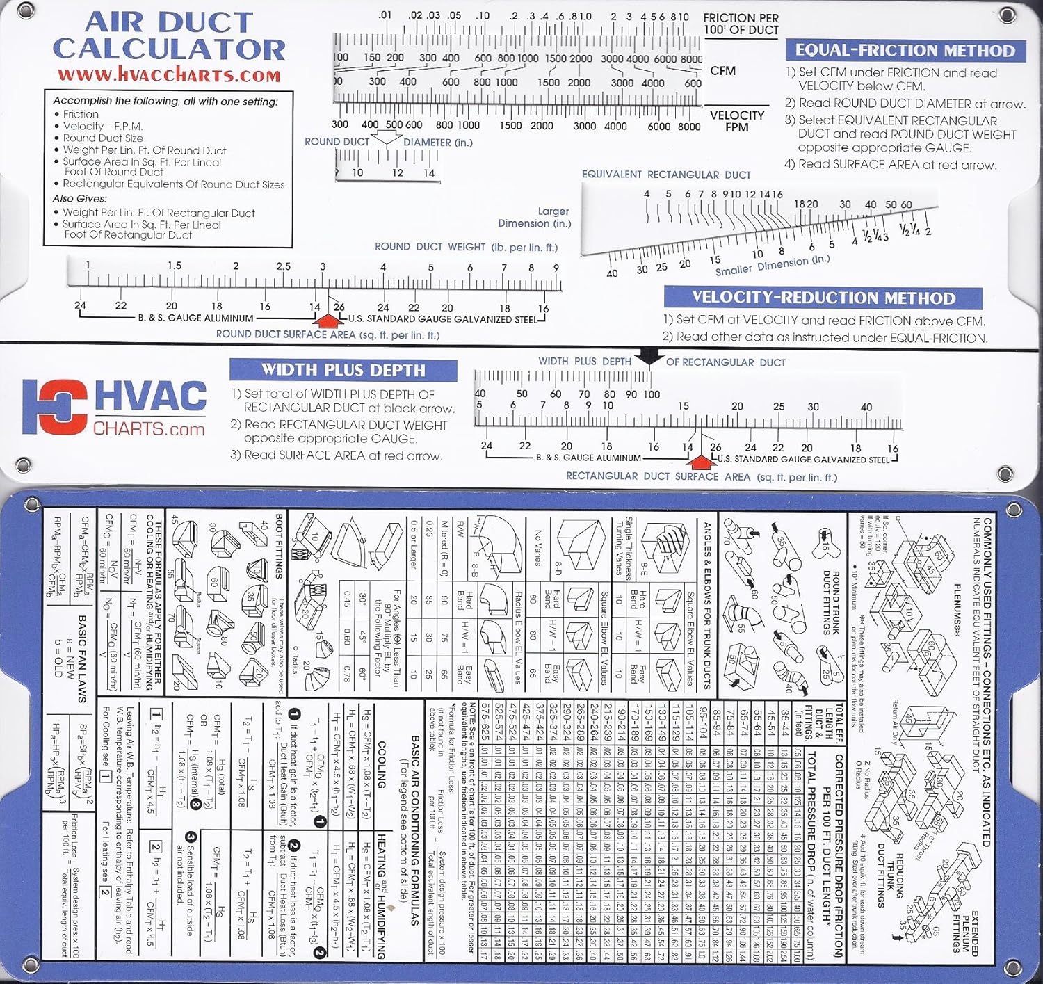 HVAC CHARTS Air Duct Sizing Calculator, 1 Count