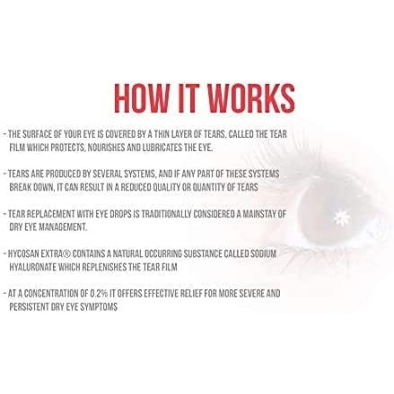 Product Information Preservative free lubricating eye drop Eye drops for more severe and persistent Dry eye symptoms 6 months sterility Contains 0.2% sodium hyaluronate Contact lens compatible Each bottle contains 7.5ml of solution. Use as part of the 3 step HEAT, CLEANSE, HYDRATE regime Always read the label and instructions for use.