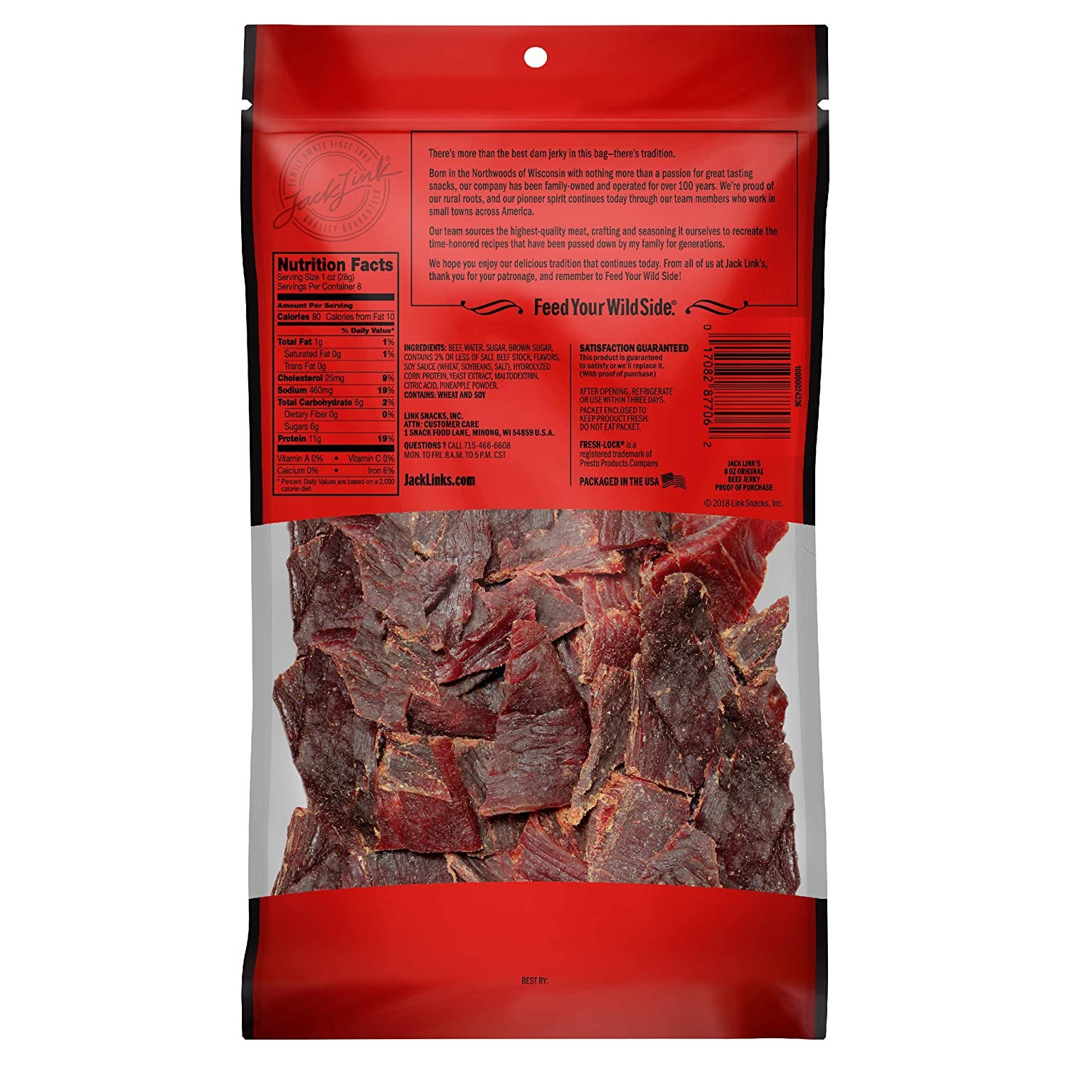 Large, resealable bag is packed with 8 oz. of Original variety beef jerky. It’s enough to satisfy the entire family! Share a bag on family movie night, bring it to the soccer game for a snack or toss a bag in the car for when the whole gang is hungry.