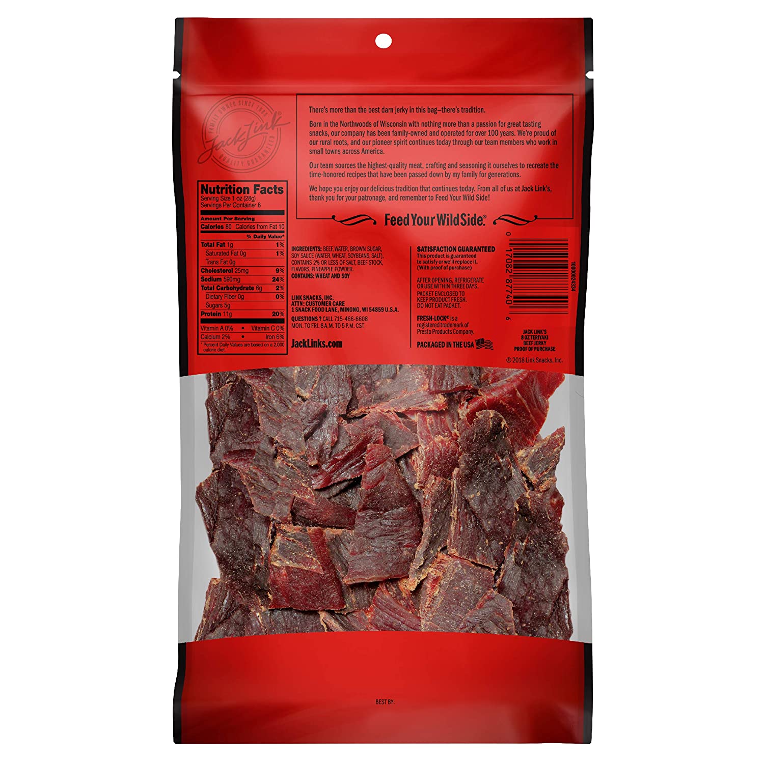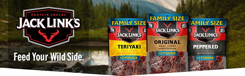 Think way back. Like even before that. Ancient civilizations fueled themselves with meat. If it worked for them, it can definitely help you power thru. You may not be crossing treacherous seas, but endless to-dos, kid activities and trying to squeeze in a workout can feel just like it. We didn’t invent jerky - we just created the timeless flavor that put it on the map. Based on the Link family signature recipe, our Original Beef Jerky is marinated in a special blend of herbs and spices and slow cooked over hardwood smoke for that timeless flavor legions of jerky fans love. Made with 100% premium beef, each serving is packed with 10g of protein and no added MSG or nitrates/nitrites. Jack Link’s Original Beef Jerky is 96% fat free and packed with taste. Large, resealable bag is packed with 8 oz. of Original variety beef jerky. It’s enough to satisfy the entire family! Share a bag on family movie night, bring it to the soccer game for a snack or toss a bag in the car for when the whole gang is hungry. When we open a bag it hardly lasts three minutes, but once open, be sure to refrigerate or eat your beef jerky within three days. Jack Link’s is America’s #1 selling jerky brand. When you open a Jack Link’s meat snack, you get a taste of the American tradition that made this family business a success: hard work, fun and quality products. Our protein snacks are the fuel to help you Feed Your Wild Side.