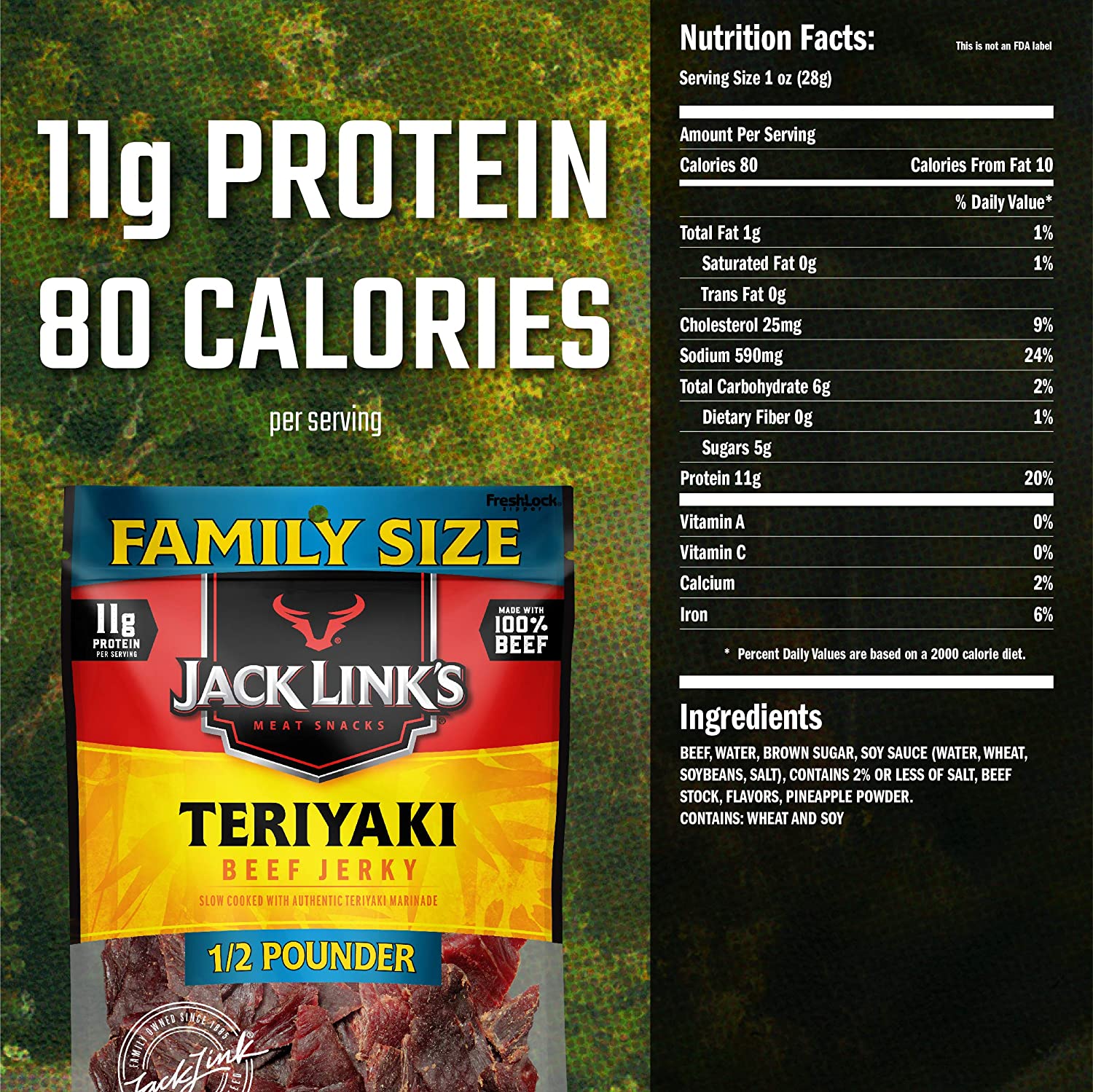 Jack Link’s Teriyaki Beef Jerky 1/2 Pounder Bag Made with 100% Premium Beef Flavorful Meat Snack