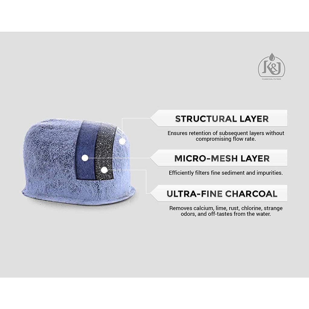 K&J Replacement Charcoal Water Filters Universal Fit for Keurig 2.0 & Older Coffee Machines, 6 Pack