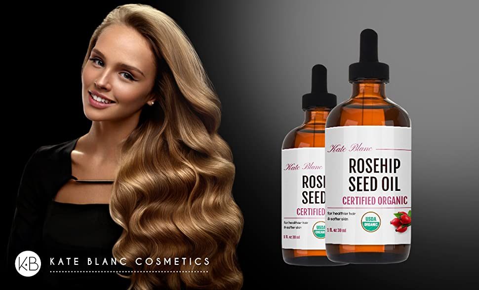 - If you’re looking for a natural and organic oil to revitalize your hair and give your skin a radiant and vibrant look, Kate Blanc’s Organic Rosehip Seed Oil is a Godsent.Kate Blanc’s Rosehip Seed Oil is organically grown and cold pressed with no added preservatives. Because it’s 100% pure, it easily absorbs into your skin without feeling greasy and won’t clog pores nor cause breakouts, leaving you looking fabulous.Pure rosehip seed oil has an amber, orange-ish hue and has a nutty smell. It doesn't smell like rose petals (that's rose water).Our oil comes in an amber glass bottle to protect from harmful UV light and it also includea glass dropper. The bottleis 100% pure rosehipoil with no carrier oil added.