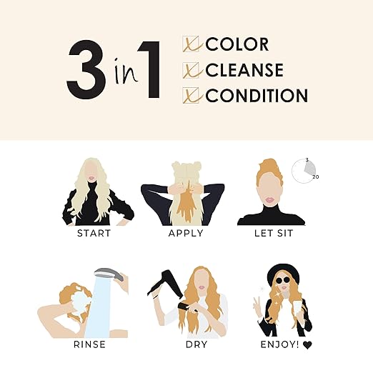 Saturate hair with water and apply a generous amount of Keracolor Color + Clenditioner. If applying to entire head of hair, comb from roots to ends to evenly distribute product. If applying to specific areas work through with fingers. Leave on for 2 - 20 minutes and rinse thoroughly.