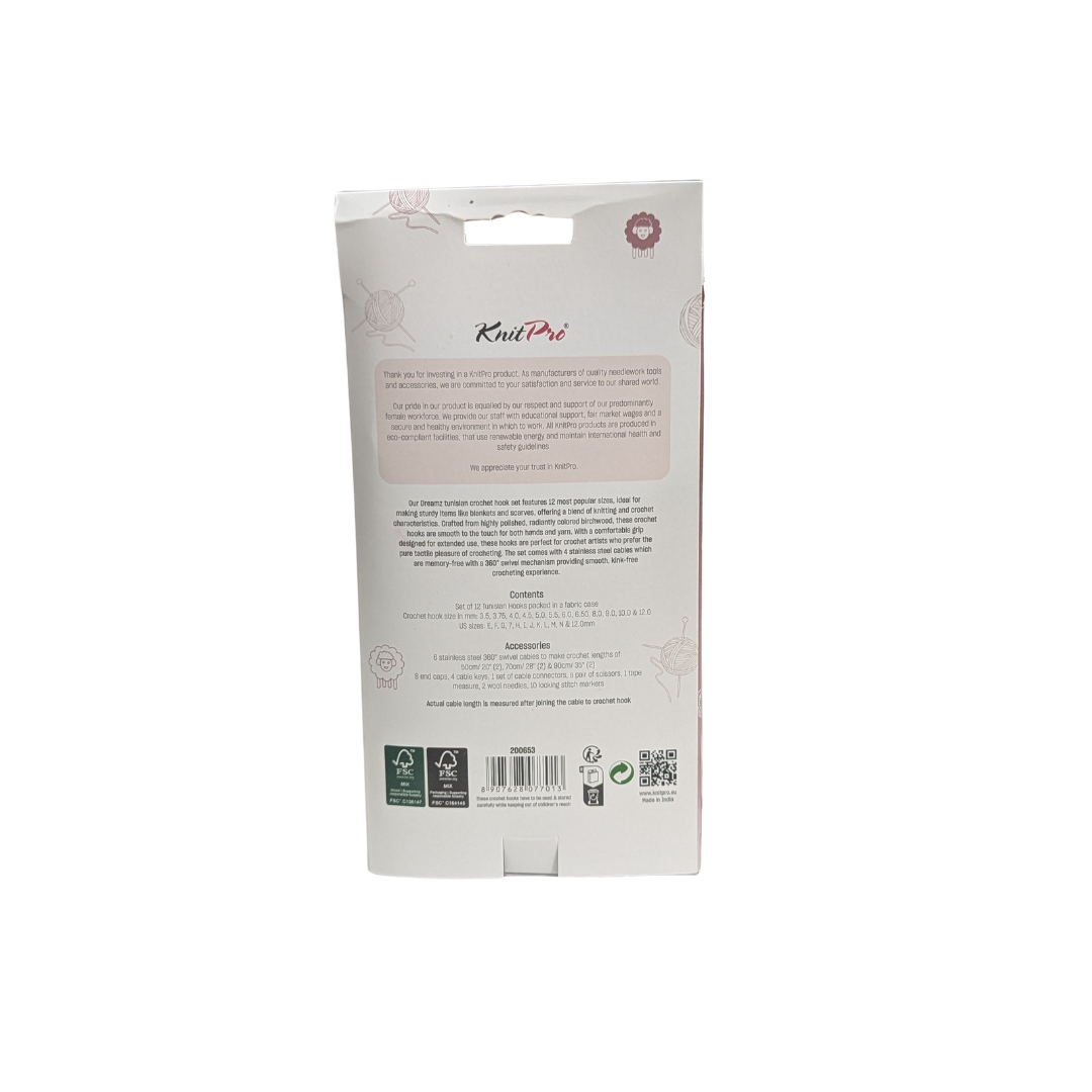 Dreamz Tunisian Crochet Hook Sets are made from polished, color-rich birchwood, offering a smooth, snag-free crocheting experience. The easy-to-connect swivel cables create a seamless join, ideal for various projects. The Deluxe Set includes 8 hook sizes and 4 cables, organized for easy storage. The Grande Set is a complete kit with 12 hooks (3.5mm to 12.0mm), 6 cables, and useful accessories, all in a Bordeaux zippered case. Perfect for beginners and experienced crocheters alike.