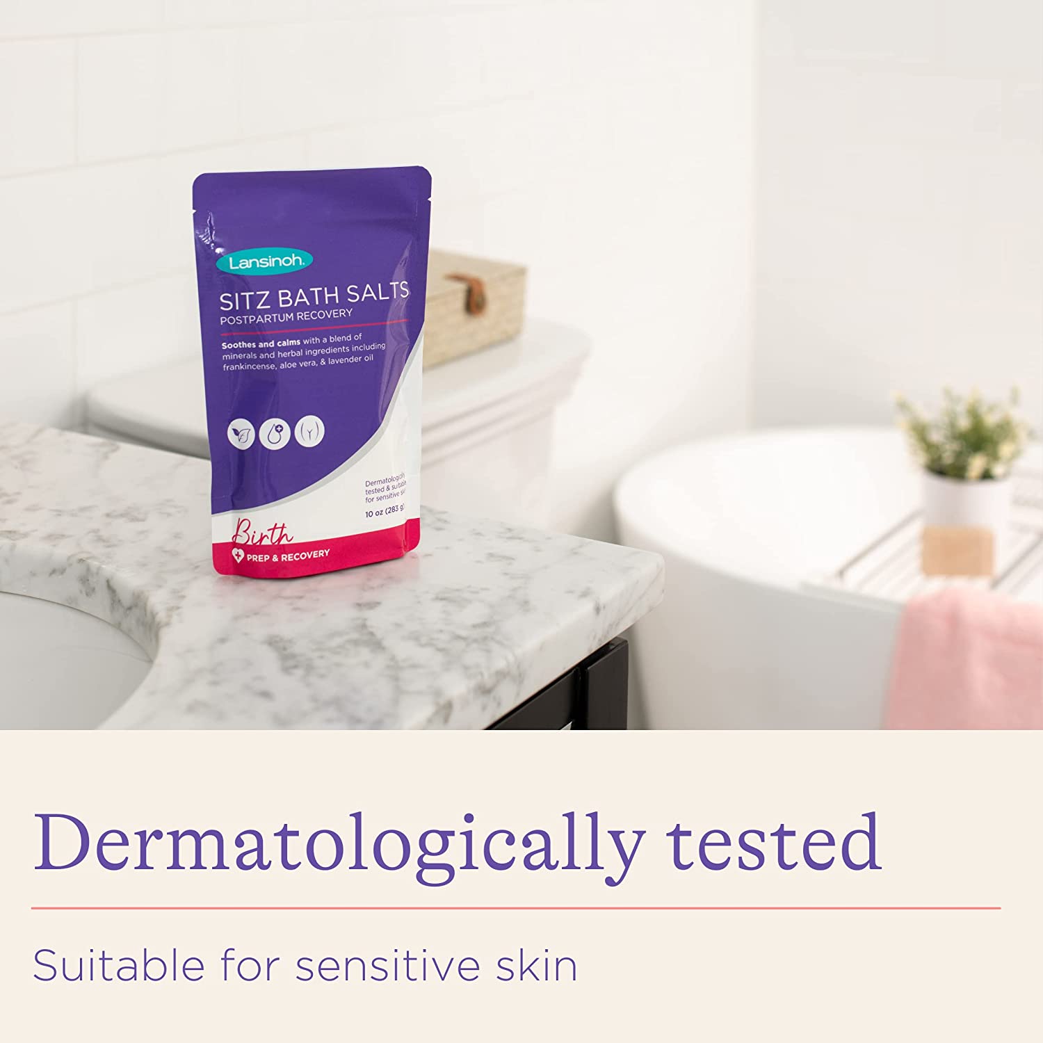 Soothing is second nature to us. Lansinoh Sitz Bath Salts are designed for postpartum recovery to help soothe and calm tender, aching areas in a comforting bath soak. Made with Epsom salts and a calming blend of all-natural herbal ingredients, including frankincense essential oils, aloe vera, and lavender oil. Dermatologically tested, with no petroleum or parabens. Suitable for use during pregnancy and postpartum. Part of the Birth Prep & Recovery line designed for mom by Lansinoh. Self-care, wellness, and postpartum recovery. Simple, safe, and backed by research and guidance from experts. For nearly 40 years, new mothers have trusted Lansinoh to support and care for them while they enter the messy magic of motherhood. Born from one mother’s realization that birthing people often go without the support they need and deserve, Lansinoh proudly stands with mothers all over the world. Our journey started with award winning, doctor recommended HPA Lanolin Nipple Cream: today, we offer a comprehensive collection of solutions to help new parents navigate pregnancy, birth, breastfeeding, and pumping. Our product range includes organic nipple balm, disposable nursing pads, washable nursing pads, breastmilk storage bags, manual breast pumps and double electric breast pumps, postpartum essentials, baby bottles, and more. Lansinoh products are available in more than 70 countries and the company is committed to being climate neutral by 2030.