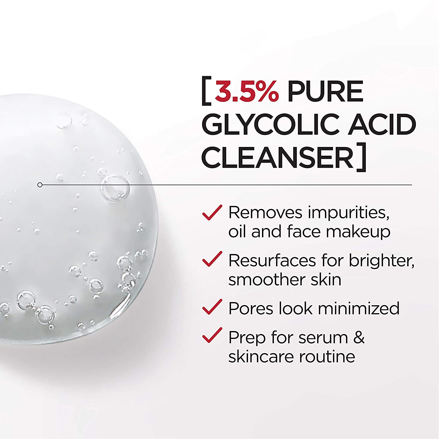 Resurface your skin and prep it for your serum application in 1 simple step! NEW Revitalift Derm Intensives 3.5% Pure Glycolic Acid, a daily exfoliating cleanser that resurfaces, removes excess oils and makeup to reveal smoother, brighter skin and to prep skin for serum application. HOW IT WORKS: the cleansing gel resurfaces skin by gently dissolving what holds dead cells together and reveals smoother and brighter skin ready for Derm Intensives serum application. WHAT'S NEW: Dermatologist-validated* formula with glycolic acid, salicylic acid and Aloe extract is non-drying and is designed for daily use. THE RESULT: Impurities, oil and face make-up are removed, pores look minimized. Skin feels hydrated and refreshed. Skin is resurfaced, it appears smoother, brighter and feels prepped for serum application. Glycolic acid is an alpha hydroxy acid recognized by dermatologists as an effective exfoliator to reveal fresher, brighter skin. Salicylic acid is a beta-hydroxy acid (BHA) that helps refine the appearance of enlarged pores. Revitalift Derm Intensives 3.5% Pure Glycolic acid cleanser is Allergy Tested, Paraben Free, Fragrance Free, Dye Free, Mineral Oil Free. Dermatologist tested suitable for sensitive skin.*An external panel of dermatologists validated that Revitalift Derm Intensives products uphold strict formulation standards and reviewed independent clinical testing results and protocols.