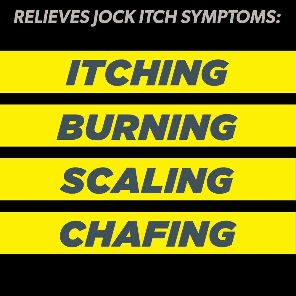 - Relieves itching, burning, scaling, chafing, and the discomfort associated with jock itch