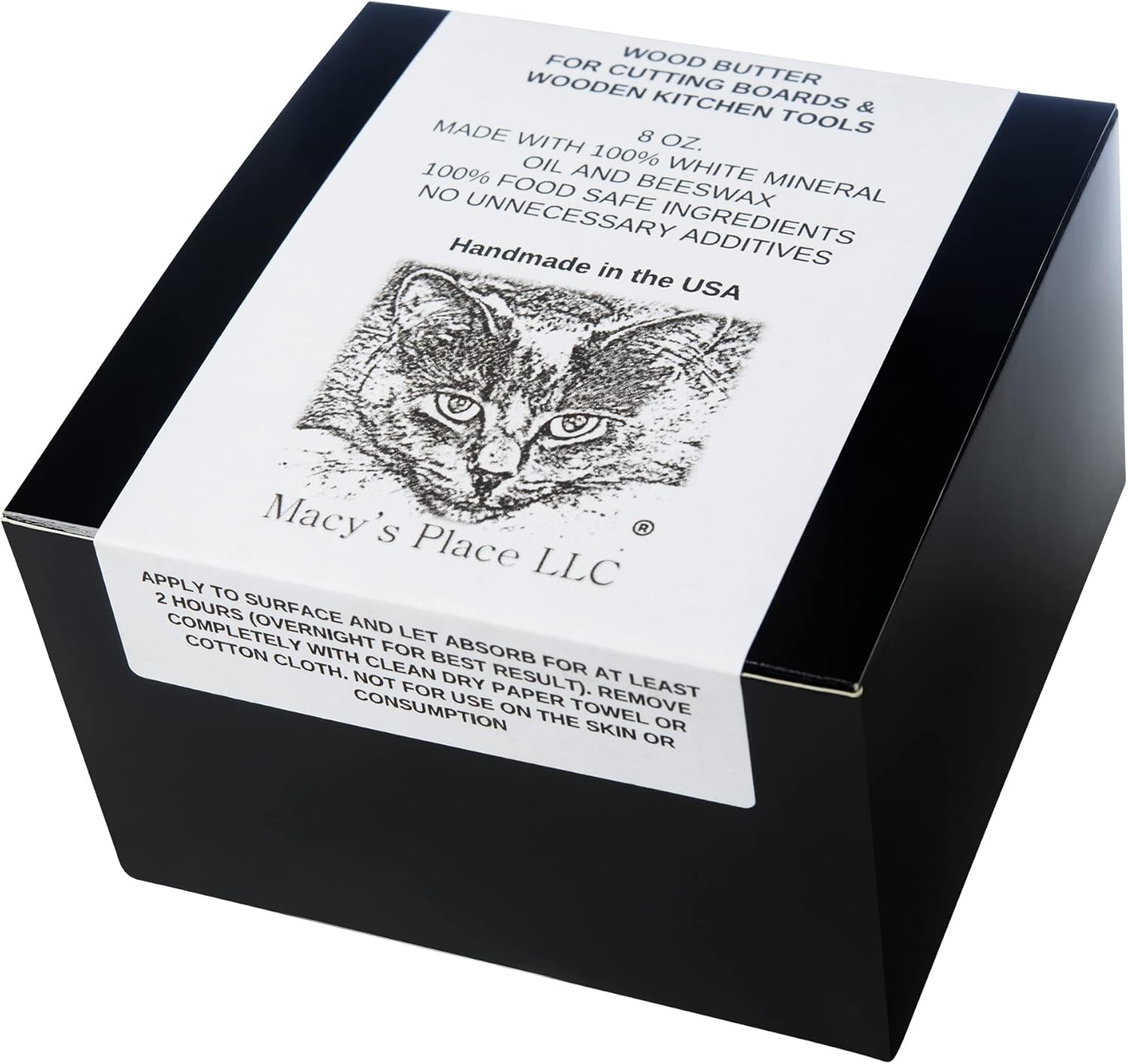 This wood conditioner protects wooden tools from drying and cracking, ensuring longevity. Made with only two natural ingredients—food-safe mineral oil and beeswax—it's ideal for conditioning wooden utensils. Proudly made in the USA by a small business with a long history in crafting cutting boards and kitchen tools. Proper conditioning also makes cleaning wooden items quick and easy.
