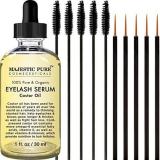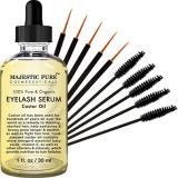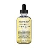 Majestic Pure Castor Oil Eyelash Growth Serum consists of 100% pure, natural, and organic castor oil; can also be used on eyebrows Castor oil has been used for hundreds of years all over the world as a remedy to thinning, stunted hair, helps eyelashes and brows appear longer and thicker, as well as fight hair loss SAFETY WARNING: For external use only. Rub a very small amount on the inside of your elbow area to test for any allergic reaction before use. Avoid contact with eyes, keep out of the reach of children. If pregnant, consult with your health care provider before use. Castor oil lash and brow serum comes with a glass dropper, 5 eyeliner style applicators (eyeliner brush), and 5 eyebrow applicators (mascara brush) that are simple to use and easy to apply to your eyelashes and eyebrows. Cold-pressed castor oil contains more omega-6 essential fatty acids, vitamin E, as well as many other vitamins and minerals which provide nutrition to hair follicles Majestic Pure Castor Oil for Eyelashes is cruelty free and not tested on animals