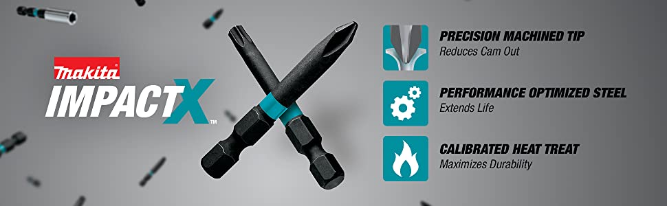 Impactx is a line of impact-rated insert bits and fastening accessories built specifically for the demands of the professional contractor. Professionals require commercial duty bits and fastening accessories that can endure the force of high-volume screw driving applications with high torque impact drivers. Standard Screwdriving bits are brittle and fit Poorly into fasteners, and in applications with high torque impact drivers this losing Combo quickly leads to broken bits. Impactx hits back with improved Fitment and increased performance with high torque impact drivers. Precision machined (not forged) tips ensure full contact fit, while performance-optimized and heat-treated S2 steel provides more flex and more durability than standard, brittle bits.