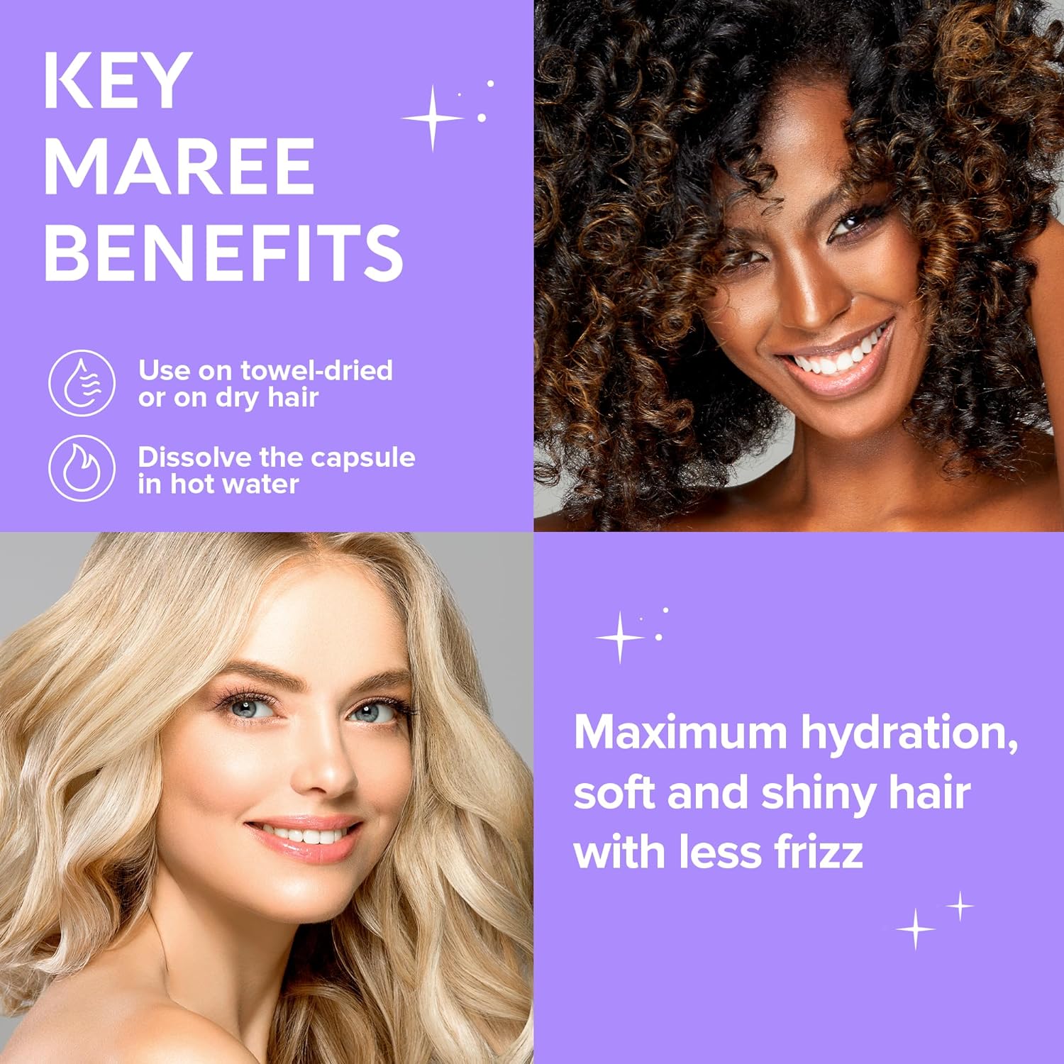 - 💎Split Ends Hair Treatment - MAREE hair styling serum helps seal split ends, restore hair bonds, and repair damage caused by color, heat, and styling. It also protects your hair from heat and sun without making it heavy or greasy. One capsule of this no-rinse hair mask is enough even for long hair and perfect to use after each hair wash, leaving your hair smooth and making it easy to brush.