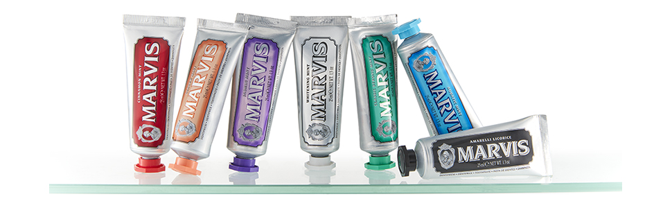 Marvis toothpaste formulas are based on a traditional processing method that guarantees a dense, compact texture, maximum protection, and an extraordinarily bright smile. The flavors combine unmistakable freshness with innovative notes to offer you a long-lasting, pleasurable taste sensation that can be different every day.
