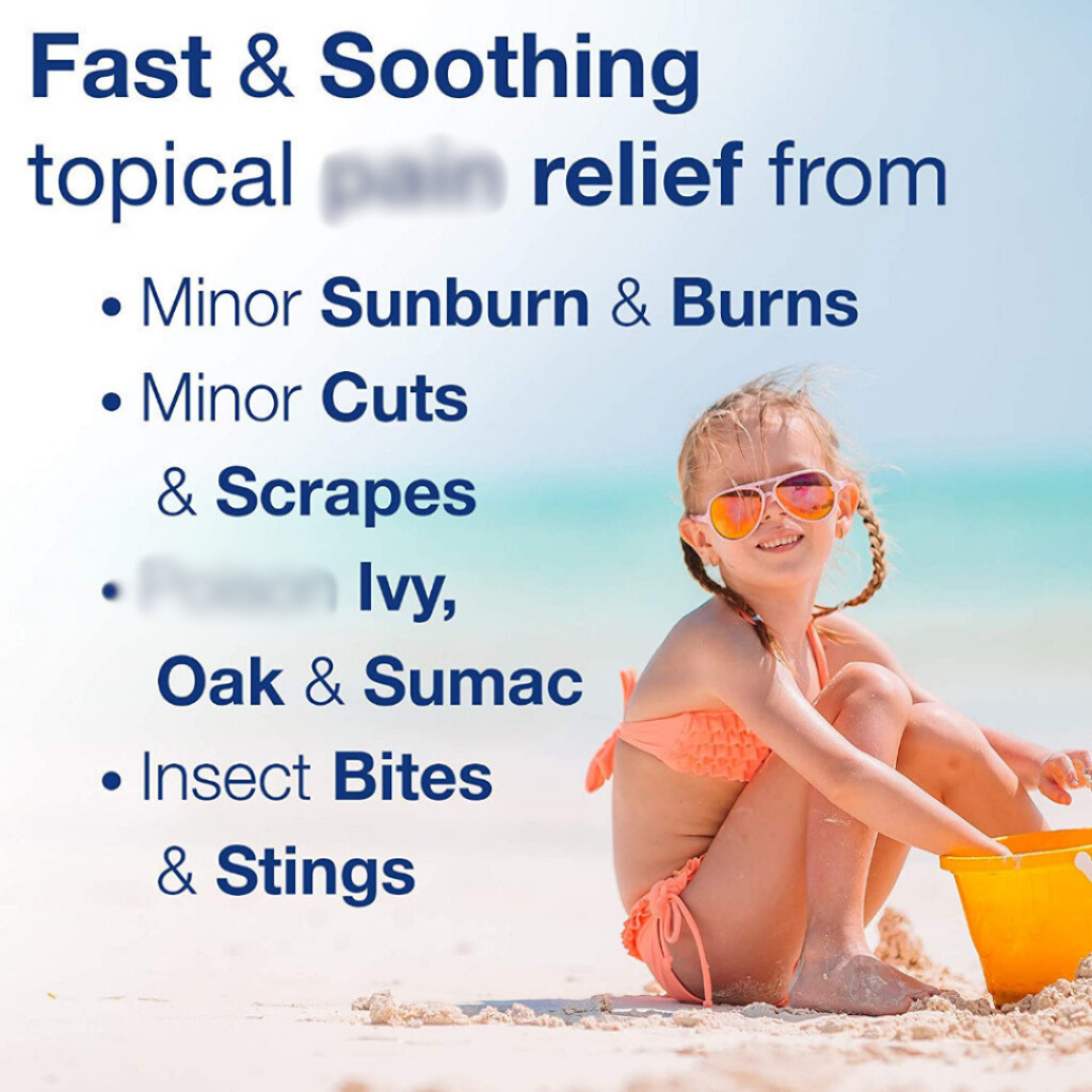 ● Topical itch soother works on minor cuts, scrapes, burns, sunburns, insect bites, stings and skin irritations