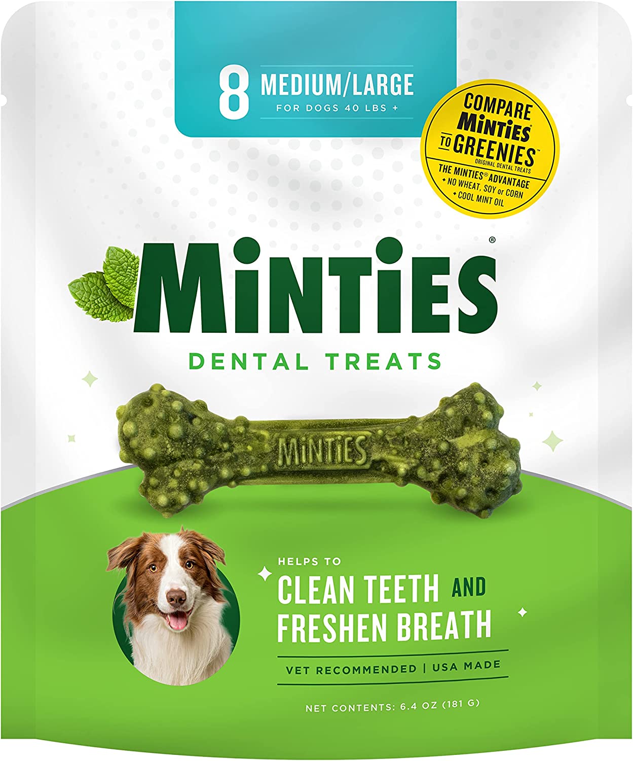 Minties dental bones and twists are your affordable alternative to Greenies Original Dental Chews. With their unique designs, Minties help clean your small or large dog’s teeth and freshen their breath – all in one easy-to-digest daily dental dog chew.