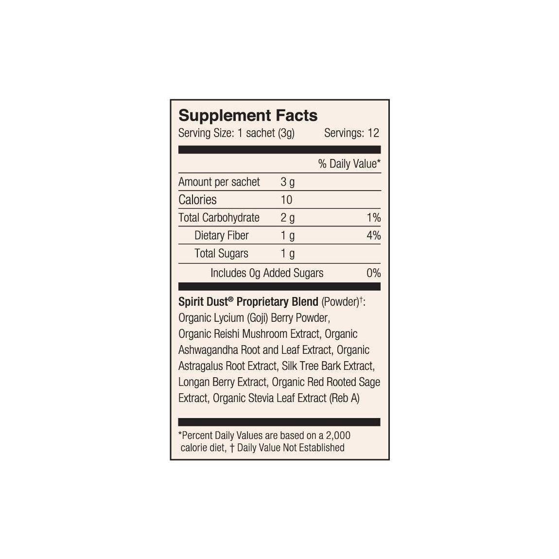 Spirit Dust is an adaptogenic blend of uplifting superherbs and supermushrooms that help combat the effects of stress to expand peaceful awareness and align you with bliss.*