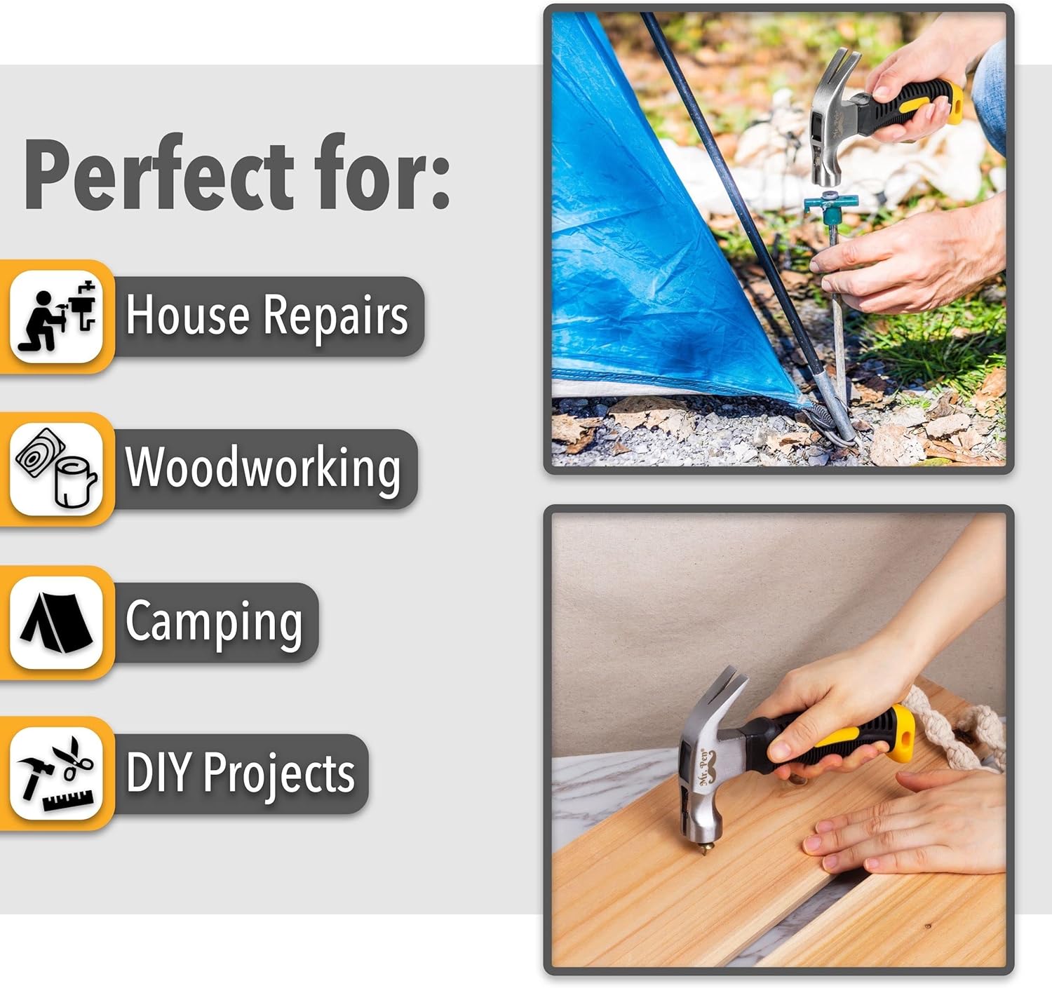 The Mr. Pen 8oz Hammer is crafted from high-density carbon steel, offering durability and anti-rust properties for long-lasting use. Its ergonomic, non-slip soft handle provides a comfortable and secure grip, making it easy to use for extended periods. This compact hammer is the perfect size for easy portability and storage, while the magnetic nail starter and hammer claw make it simple to place and remove nails. Ideal for woodworking and DIY projects, it's perfect for use at home or in a workshop setting.