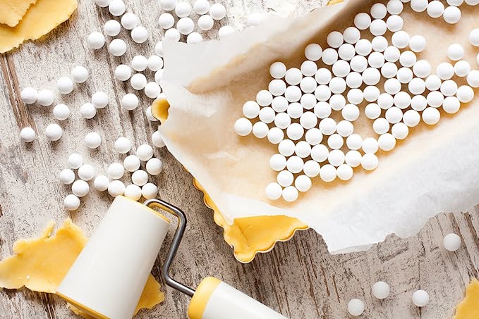 Mrs. Anderson’s Ceramic Pie Weights prevent empty pie shells from shrinking, bubbling and buckling during the baking process. Baking empty pie shells, or blind baking, couldn’t be easier! Whether using frozen pie crust or perfecting homemade pie crust from scratch, they weigh down the bottom of the pie dough to help reduce shrinking and keep air bubbles from forming. It’s a useful addition to baking accessories, the individual beads are easy to place and arrange as needed for any pie size. Heat transfers evenly so crusts bake to a perfect golden brown. Blind bake pie crust, cool, and fill for classics like coconut cream pie, banana cream and chocolate cream pie, lemon meringue, strawberry rhubarb pie, banoffee pie, and more. Made from natural, food-safe ceramic stoneware to be strong, durable and reusable. Heat resistant to 480-degrees Fahrenheit. Includes convenient storage container. Wipe clean with a dry cloth or hand wash in warm, soapy water. Allow them to air dry thoroughly before storing. Brought to you by HIC Harold Import Co.