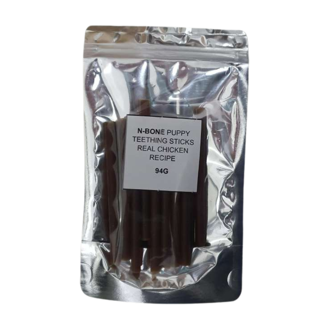 Just like babies, puppies experience pain and discomfort while teething. The chewing process helps alleviate the pain, but the endless chewing of a teething puppy can cause inappropriate destruction of property. If they chew on something too hard, it could cause damage to your puppy’s new teeth! Damage to baby teeth can cause dental issues later in life. N-Bone® Puppy Teething Sticks help satisfy your puppy’s chewing urges. They provide a non-destructive outlet for chewing while protecting immature teeth and all of the household items within gnawing range. Specially formulated to be soft and pliable, our delicious treats will soothe your puppy’s sore gums and promote good dental health. N-Bone® Puppy Teething Sticks are the safe and natural way to help your puppy through the teething stage