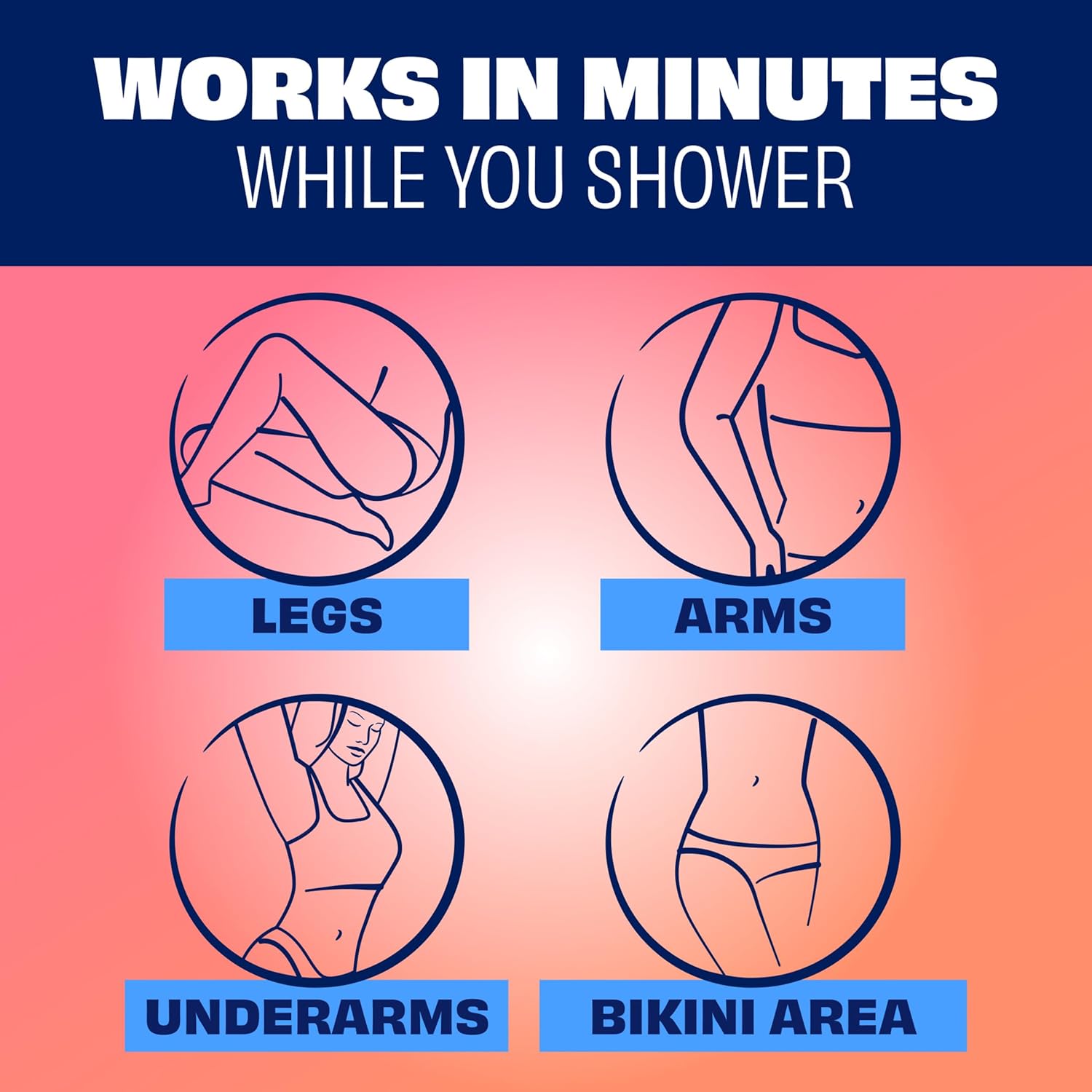 Nair Hair Removal Shower Cream features a new and improved formula with fragrance technology and natural extracts for a fresh, clean scent. Designed to keep skin smooth for days longer than shaving, it helps reduce hair regrowth. Effective in as little as 3 minutes, this lotion is safe for legs, arms, underarms, and the bikini area. Infused with natural coconut oil and Vitamin E, it’s free from dyes, parabens, phthalates, and sulfates. Dermatologist-tested and easy to use, it offers blade-free hair removal for all skin types.