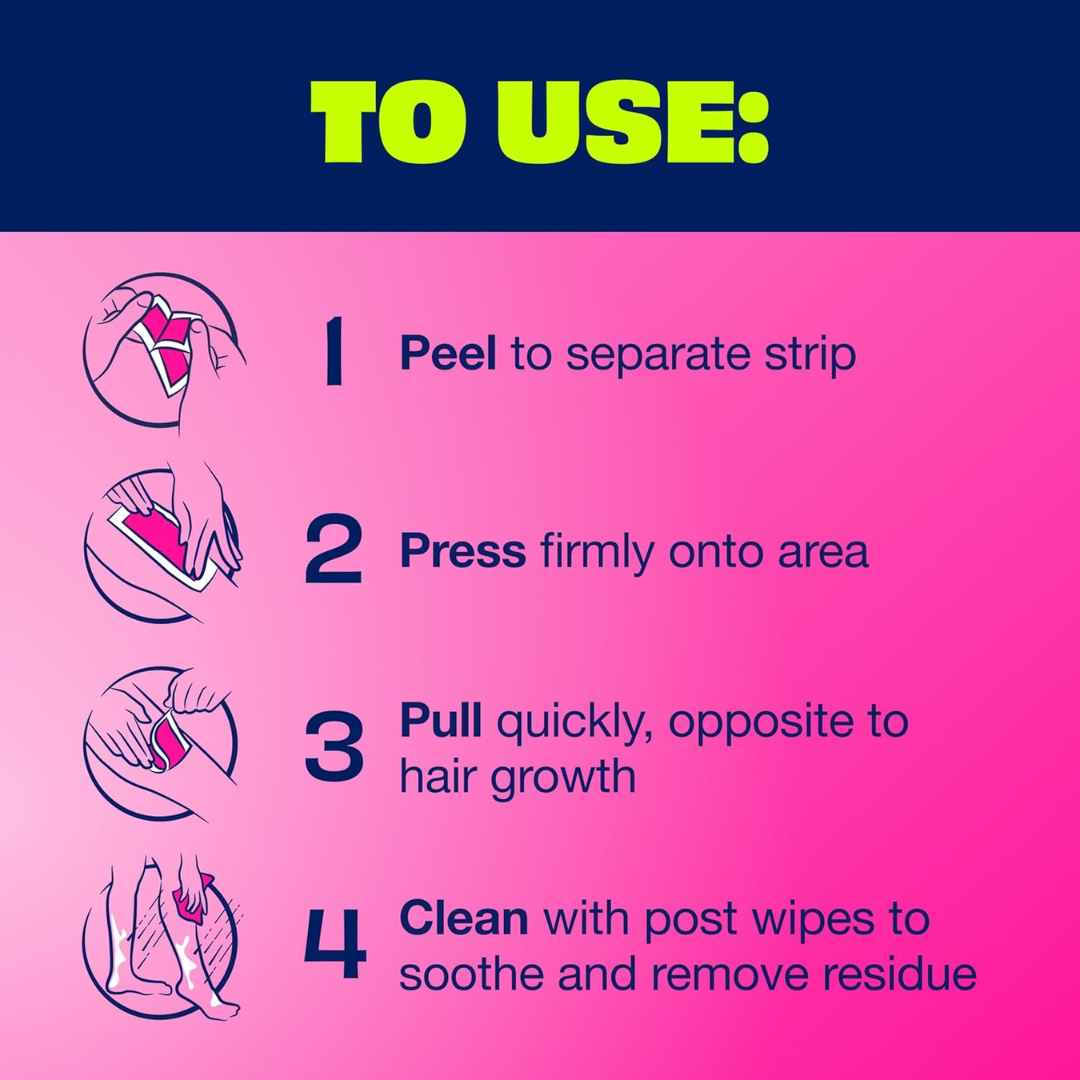 Nair Wax Ready Strips for Legs & Body, 40 Wax Strips + 6 Non-Flushable Wipes