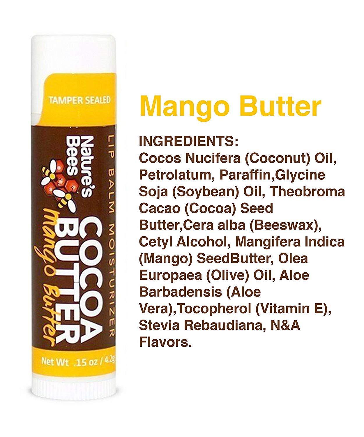 Nature's Bees, Cocoa Butter Lip Balm, Lip Moisturizer Treatment, Mango Butter
