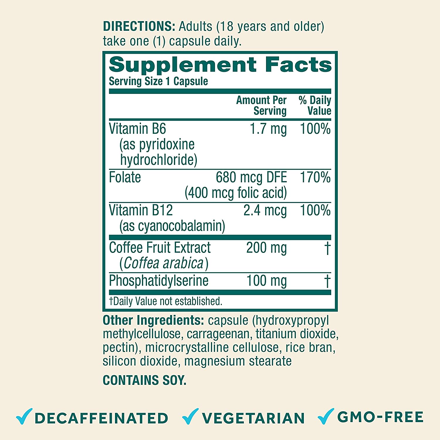 Neuriva Nootropic Brain Support Supplement + Vitamin B6, B12 & Folic Acid, 30 Capsules