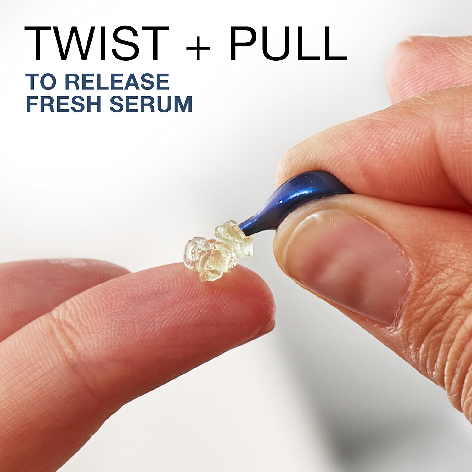 Target fine lines, dullness, wrinkles, and skin elasticity with Neutrogena Rapid Wrinkle Repair Retinol Face Serum Capsules. These facial serum capsules leave your skin instantly softer and smoother and more radiant in 1 week. In four weeks, skin is left with visibly improved fine lines, wrinkles & elasticity. The water biodegradable, seaweed-based capsules provide easy to use, mess-free application at home or on the go, and the lightweight and non-greasy serum is hypoallergenic and free from fragrance, alcohol, mineral oil, parabens, and silicone. Each anti-aging serum capsule contains a fresh dose of retinol that targets fine lines, wrinkles, and elasticity, and is suitable for all skin tones and types. To use, gently twist and pull to open the retinol capsule and smooth over freshly cleansed skin. Enhance your anti-aging routine by following the serum with Rapid Wrinkle Repair Retinol Regenerating Cream.