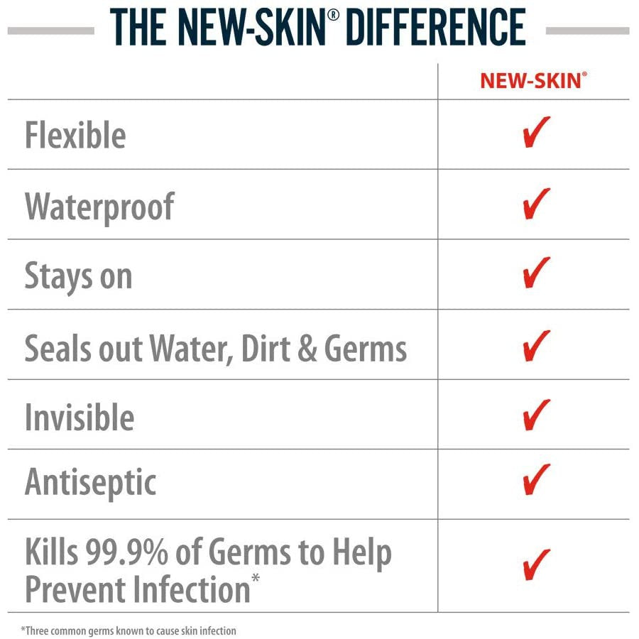 New Skin Liquid Bandage is no ordinary bandage. But you're no ordinary person. This is a serious bandage that's waterproof and rapid drying and still lets your skin breathe. Antiseptic and sterile, New Skin is an advanced bandage for your active life