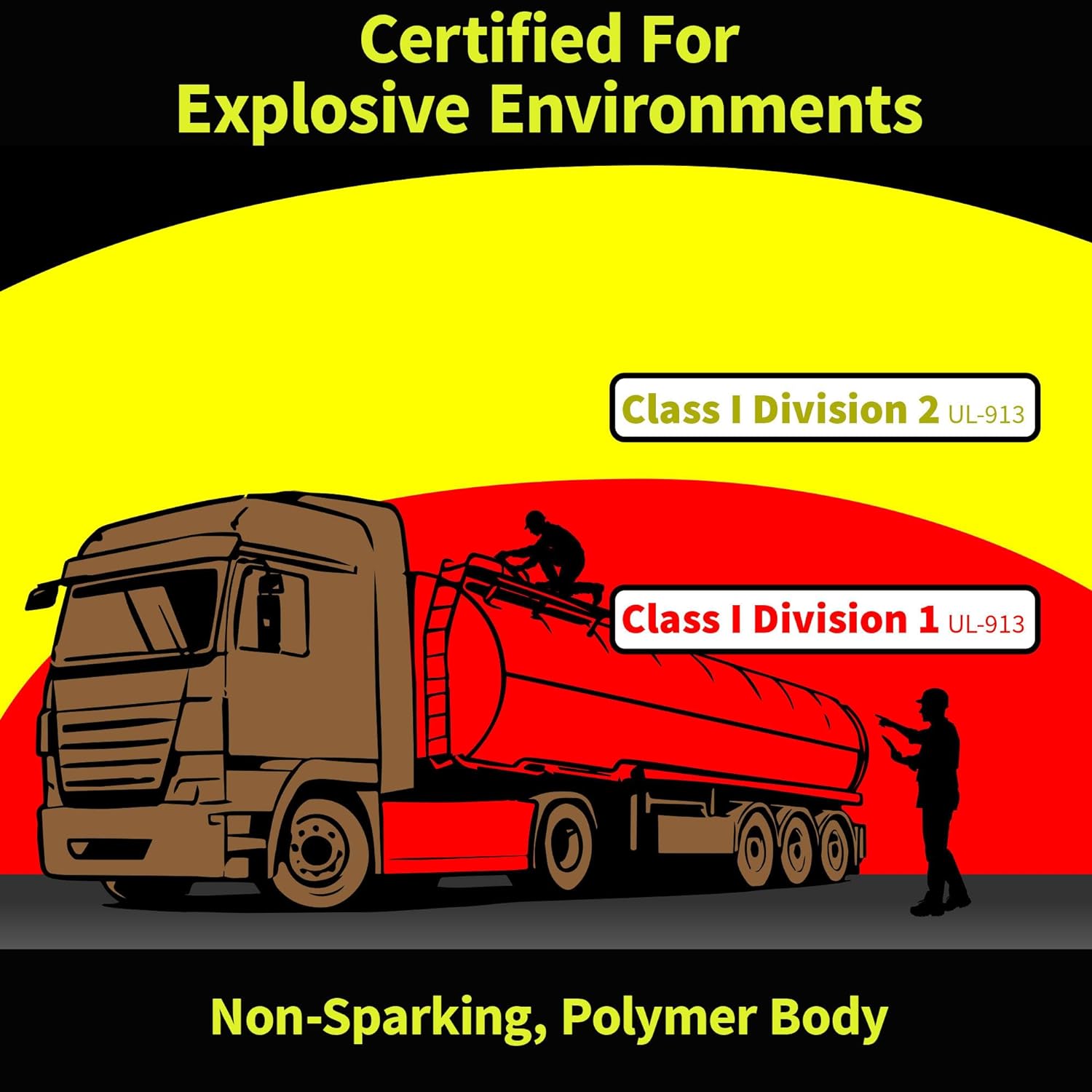 This Dual-Light flashlight is ETLus-listed Intrinsically Safe for use in both above and below-ground hazardous locations where explosive gases and dust may be present.