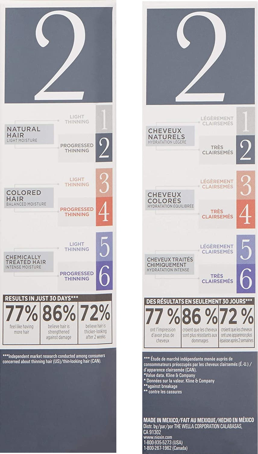 Nioxin System 2 Hair Care Kit for Natural Hair with Progressed Thinning amplifies hair structure and Protects against hair breakage. This unique set of three professional hair products, based on an advanced skincare approach, is specially formulated as a hair thickening treatment, delivering denser-looking hair. The Volumizing Nioxin System 2 regimen reduces hair loss due to breakage and strengthens the hair while refreshing the scalp and delivering a healthy shine to natural hair with progressed thinning. Nioxin Cleanser Shampoo removes sebum and environmental residues from the scalp and hair. Nioxin Scalp Therapy Conditioner is a lightweight conditioner that helps provide hair resilience and control moisture balance. Nioxin Scalp & Hair Treatment refreshes the scalp and increases hair volume.