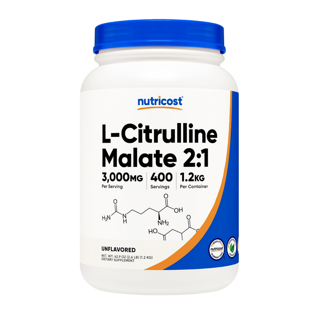 Nuticost's L-Citrulline Malate 2:1 is a high quality L-Citrulline product containing 1.2kg of l-citrulline malate in each bottle. Each bottle contains a convenient serving scoop as well. This product is non-GMO, gluten free, and made in a GMP compliant,