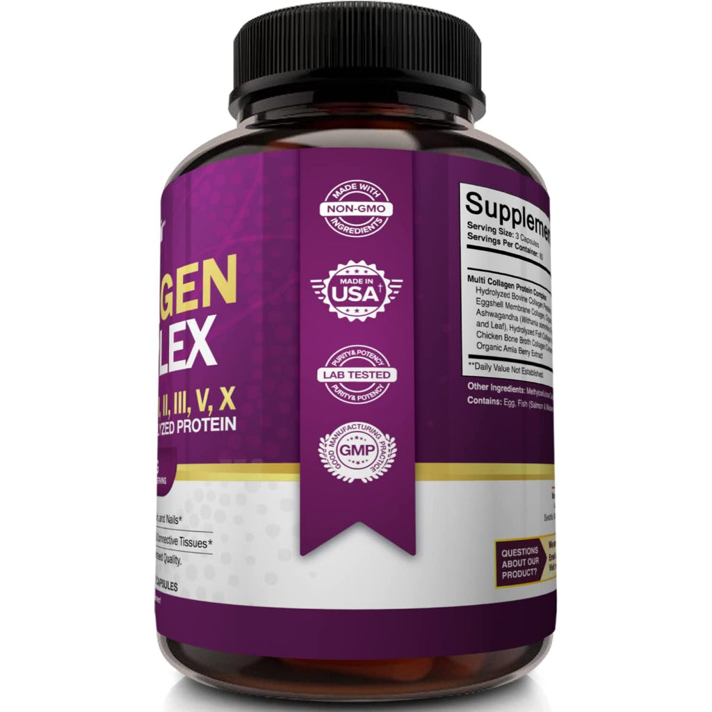 Nutriflair Collagen Complex Hydrolyzed Protein Multi Collagen Peptides 180 Vegetable Capsules