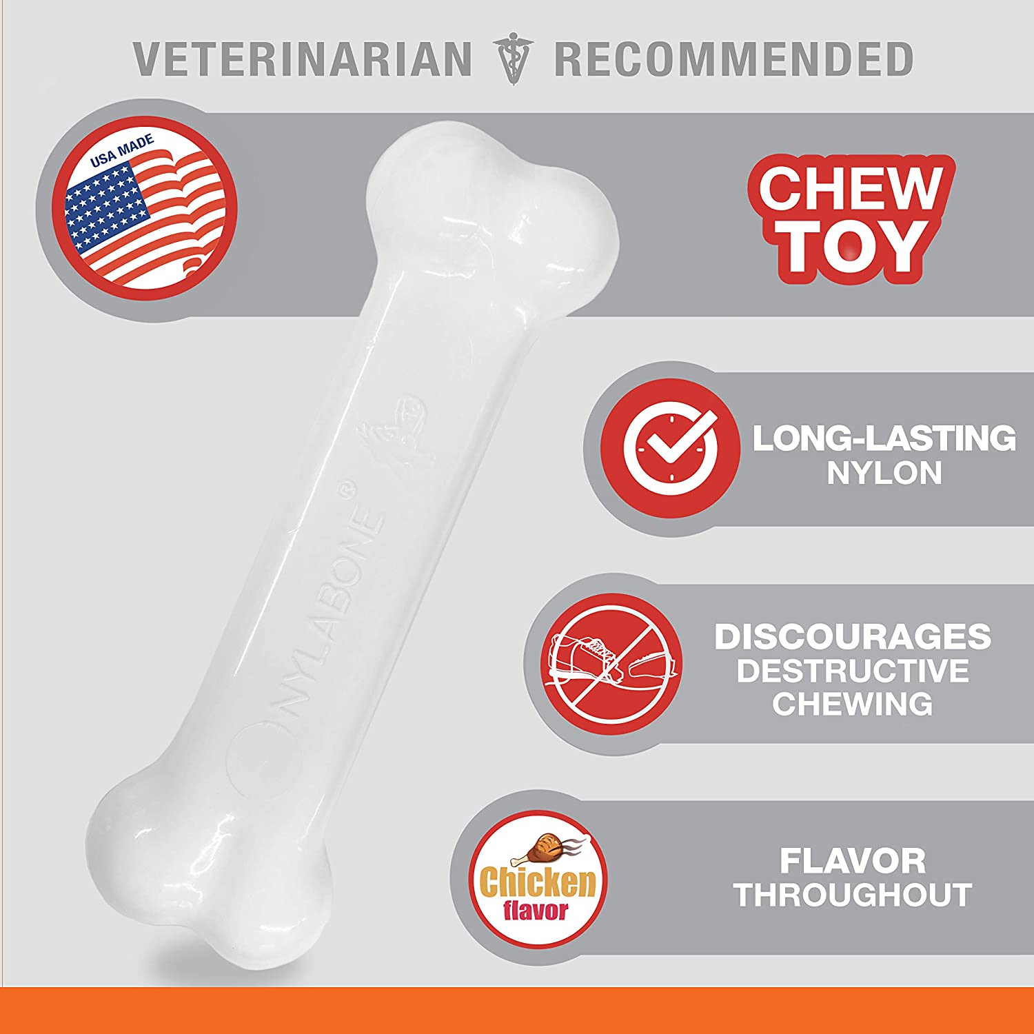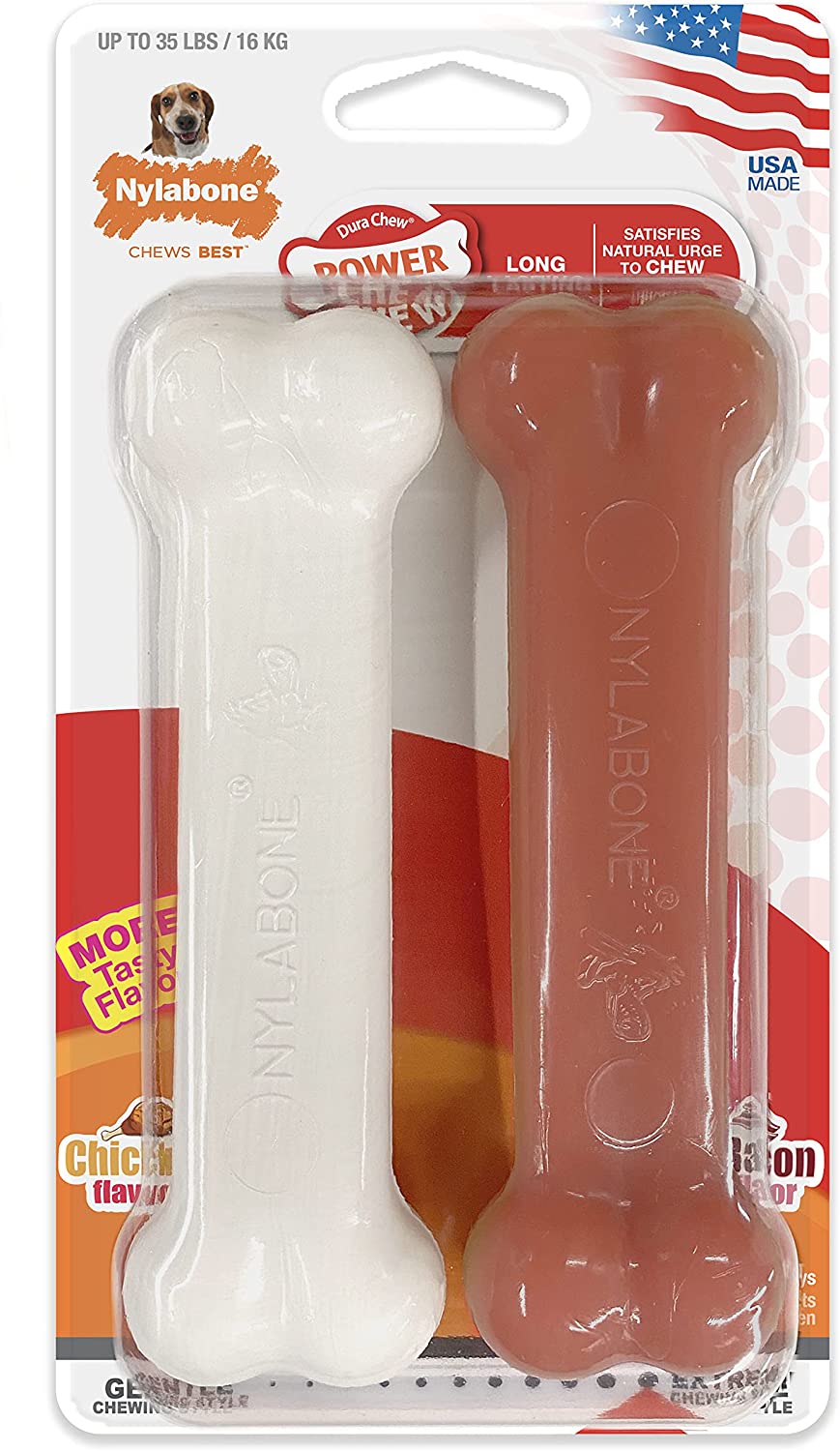Nylabone Dura Chew Classic Twin Pack Power Chew Chicken & Bacon Flavor for Dogs Up to 35 lbs. / 16kg (NVD003VPP)