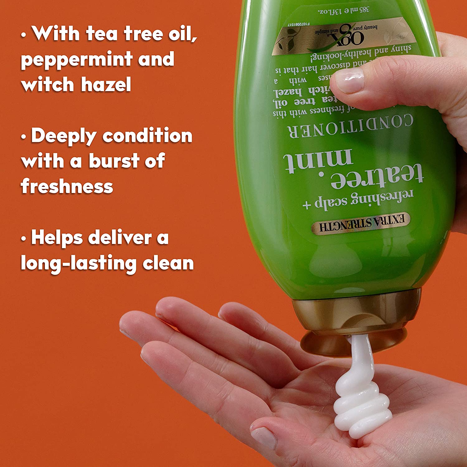 - REFESHED and HYDRATED: This 13-fluid ounce bottle of OGX Extra Strength Refreshing Scalp + Teatree Mint Conditioner moisturizes strands for a serious hair refresh and reset