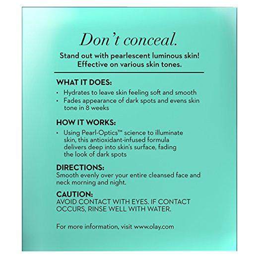 Let your skin concerns fade away. Reveal your most pearlescent beautiful skin with Regenerist Luminous Tone Perfecting Cream. This lightly-scented fast-absorbing moisturizer hydrates your skin. Over 8 weeks its formula with a brightening complex fades the look of dark spots age spots sun spots and discoloration ï½ evening your overall skin tone. Simply massage the moisturizing cream into your skin each morning before applying make-up and at night after cleansing. Experience bright beautiful healthy-looking skin every day with Olay Regenerist Luminous Tone Perfecting Cream.