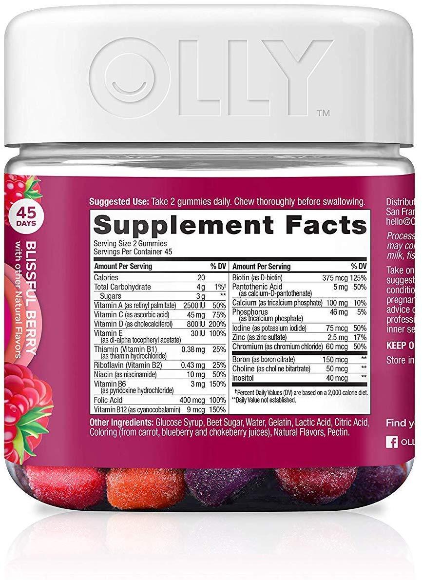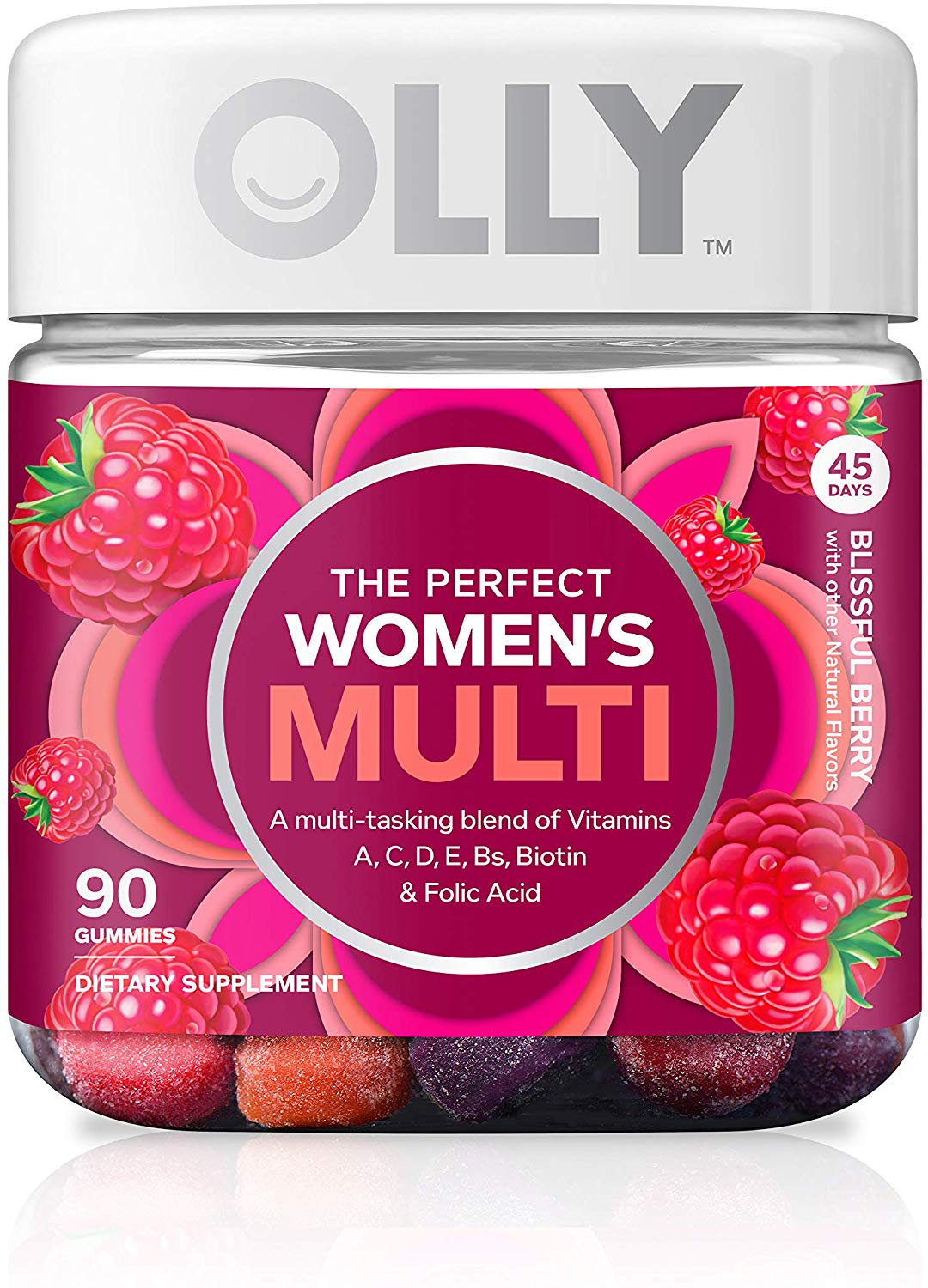 OLLY The Perfect Womens Gummy Multivitamin, Blissful Berry, Vitamins A, D, C, E, Biotin, Folic Acid (90 Gummies)