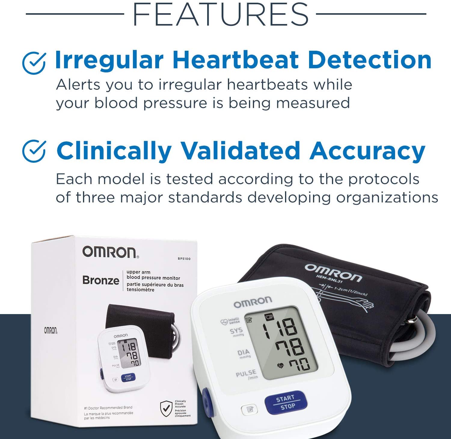 Irregular heartbeat detection - The Omron Bronze monitor captures your readings and any irregular heart and body movements during measurement.