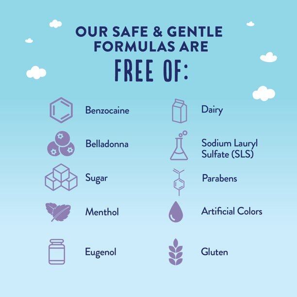 Orajel Baby Drug-Free Cooling Gels will help soothe infants who may be teething, upset, cranky or fussy -- day and night! Contains two 0.18oz tubes: one daytime and one nighttime formula. Use the daytime formula at home or on-the go, and the nighttime formula with chamomile at bedtime. Safe and gentle, Orajel is the #1 Pediatrician Recommended Brand for Teething*. And when it’s time to move on to fluoride-free training toothpaste and independent brushing, Orajel has you covered from first tooth to full smile. *among those who recommend a brand