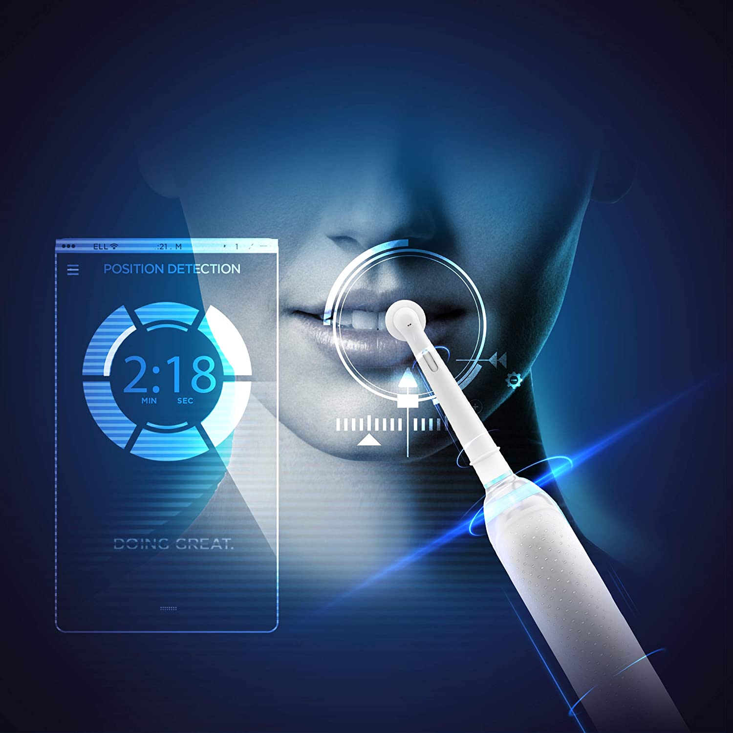 The Oral-B Genius 8000 comes with position detection technology which uses Bluetooth technology, your smartphone, and facial recognition technology to provide you with real-time feedback about your brushing habits. The 360 Smarting with LED lights allows you to personalize your brushing experience with your choice of 12 colors. The Smarting works with the integrated timer and pressure sensor to provide you with visual feedback on brushing time and brushing pressure. Together, they help you ensure you brush for the recommended 2-minutes while making sure you brush with appropriate pressure to protect your gums from over-brushing. The premium smart travel case lets you charge your brush and smartphone (via USB) at the same time while using only one wall plug. The Genius features 6 brushing modes so you can further customize your brushing experience based on your specific oral care goals. This highly advanced brush features a dentist-inspired round head that surrounds and cups each tooth with dynamic oscillating, rotating and pulsating movements to remove up to 500% more plaque than a regular manual toothbrush. Trust in the precision engineering of Braun and the dental expertise of Oral-B, the No. 1 brand used and recommended by dentists worldwide. 100% satisfaction guaranteed.