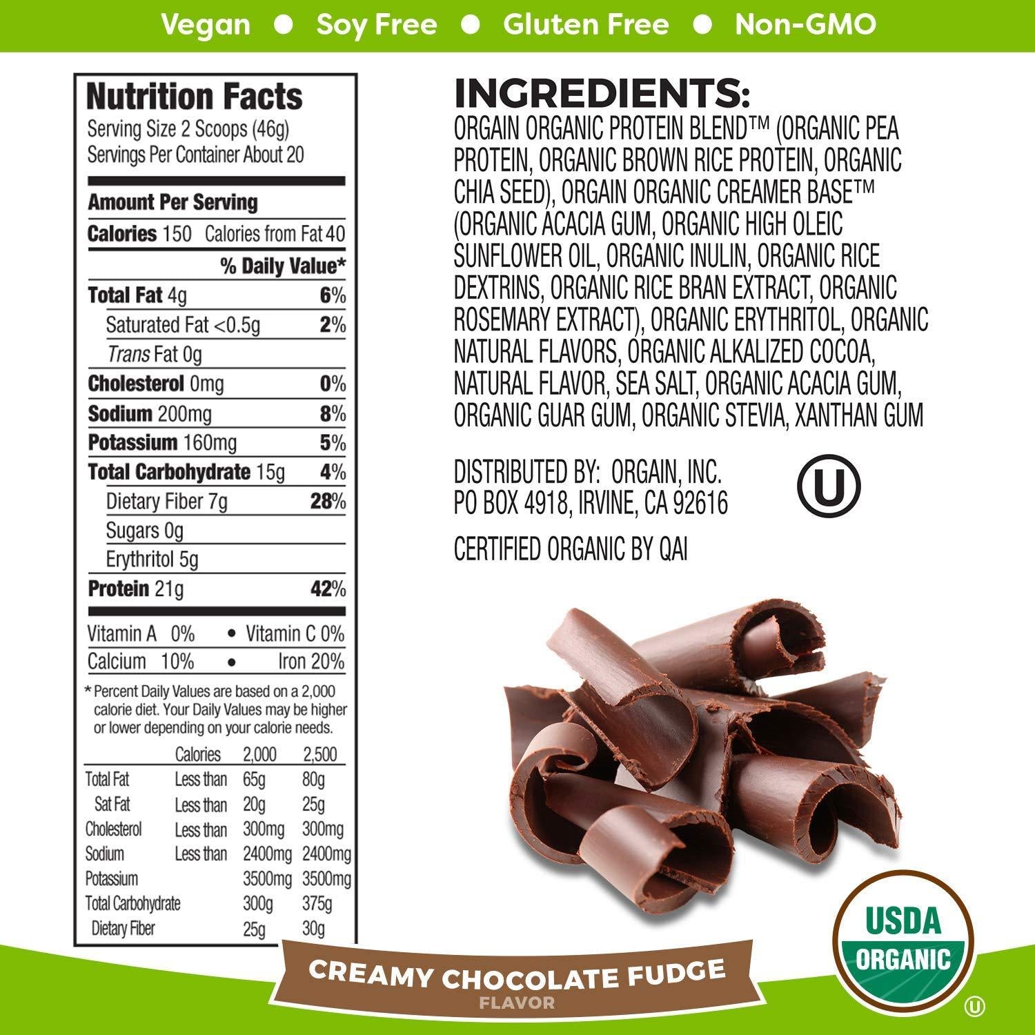 - Orgain Organic Protein Plant Based Protein Powder, Creamy Chocolate Fudge (2.03 LBS / 920g)